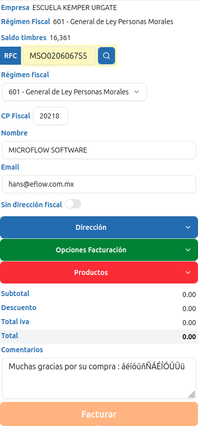 El formulario inicial para facturar se verá similar a la imagen siguiente